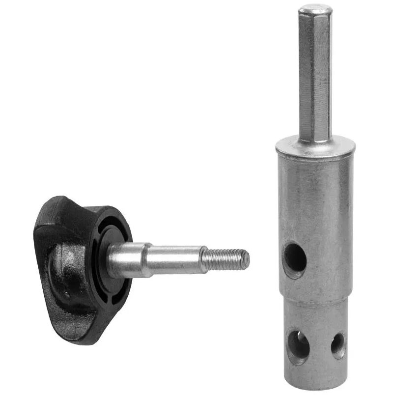- гвинт-баранчик з різьбленням М8 (отвір 8,5мм) для приєднання до шнеків мотобурів.
