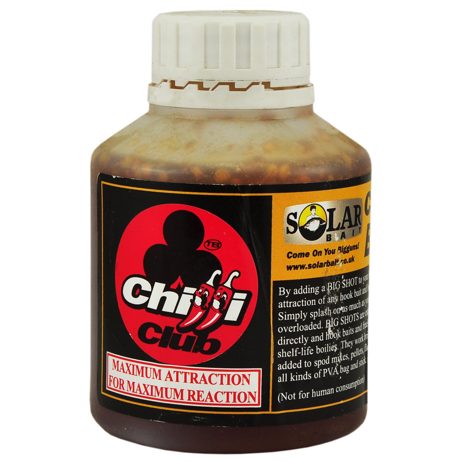 Високо атрактивна рідина для дипування насадок, додавання в підгодовування, зернові та пеллетси. Big Shot Chilli Club так само як і варені бойли цієї серії містить у собі шматочки перцю чилі. Містить у собі ароматику серії Mixmaster та рідкі харчові добавки. Ідеальна добавка для сумішей Up&Down.