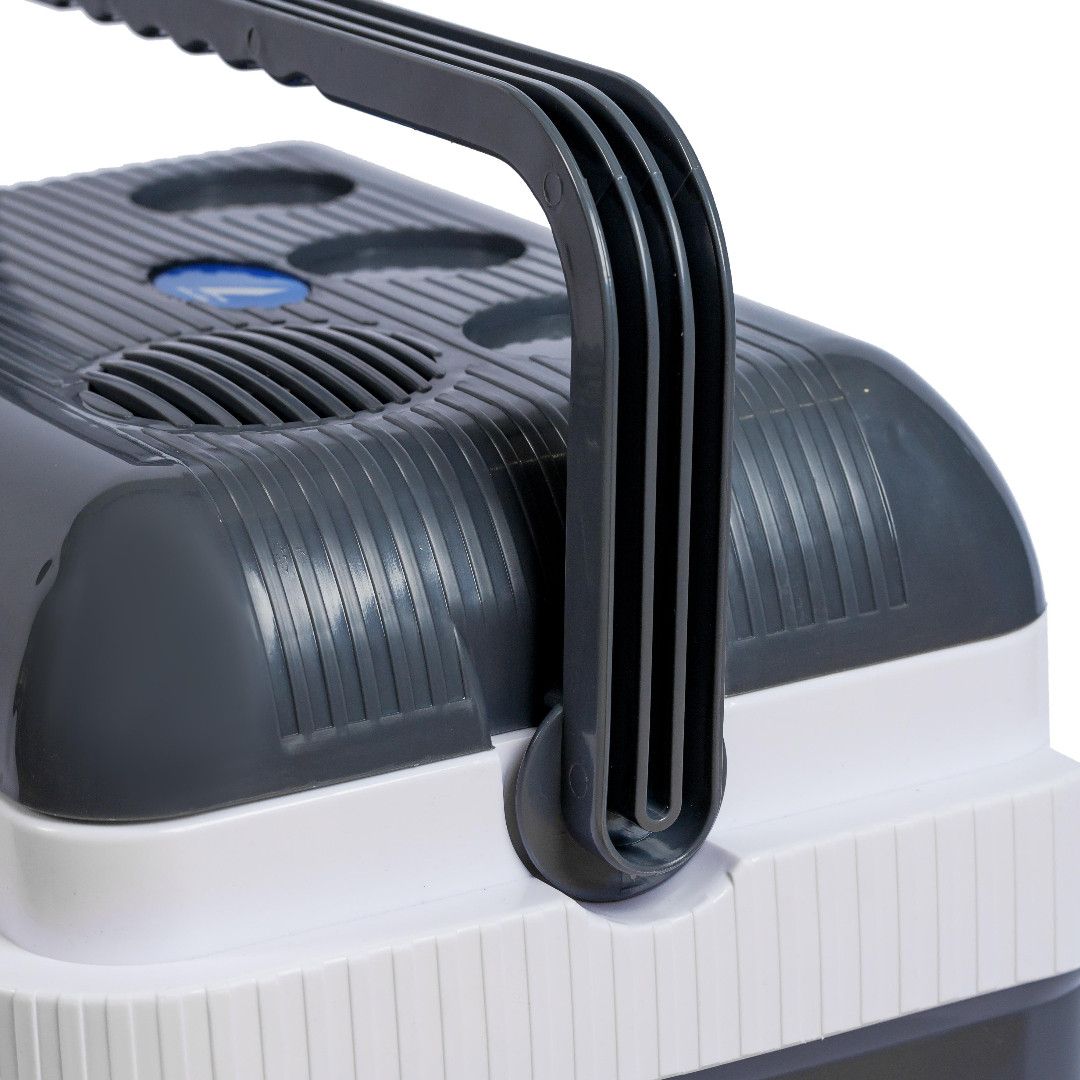 Для зручності використання оснащений ручкою. Внутрішній відділ має перегородку, завдяки чому можна поділити об'єм холодильника на 2 відсіки. Корпус з ударостійкого пластику захищає від пошкоджень.