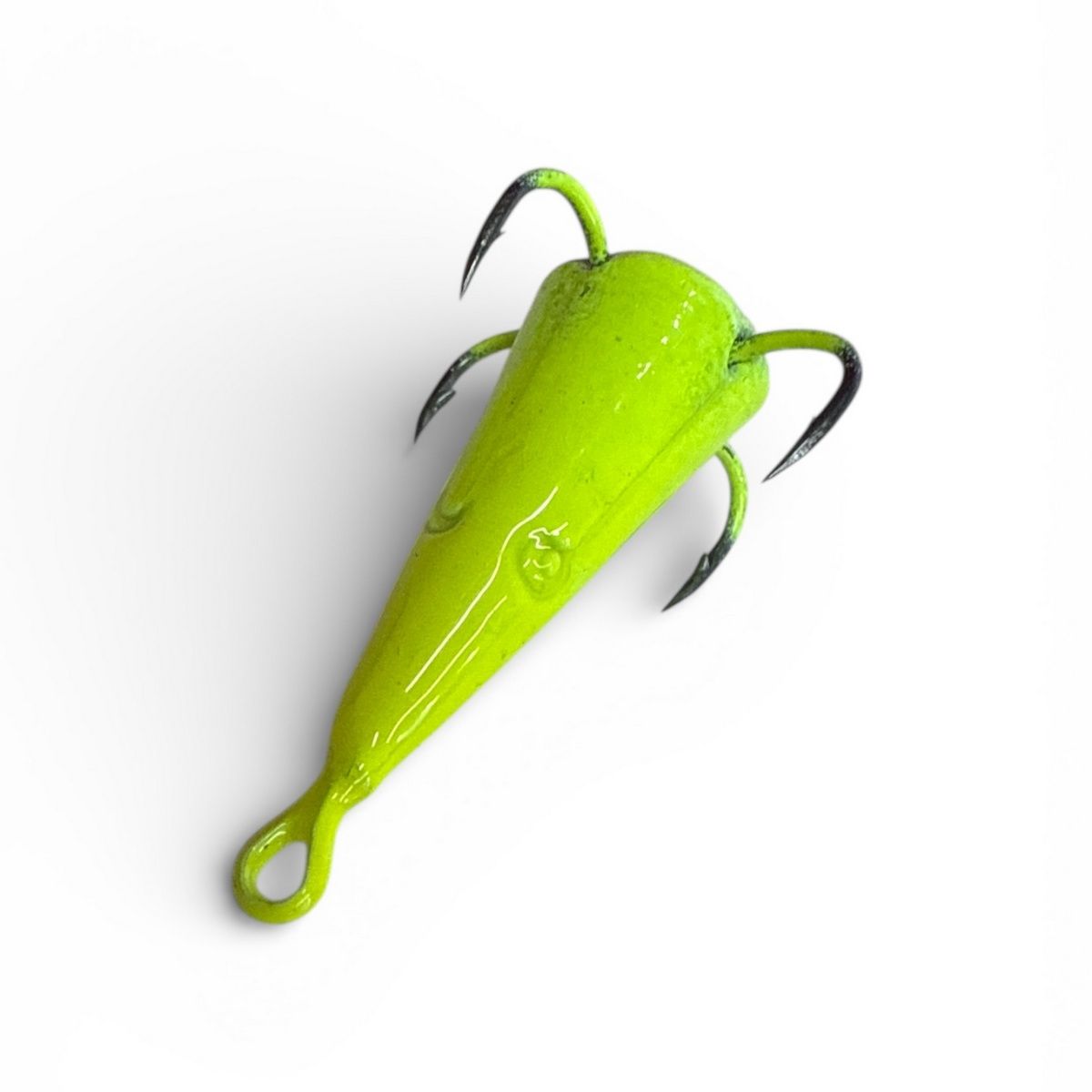Блешня "Конус великий" від FRY - ефективна вертикальна приманка для стрімкого блешніння в зимовий період. Її конструкція з чотирма гачками (зазвичай у вигляді коромисла або підвісного трійника/четвірника) допомагає збільшити шанси на успішну підсічку.