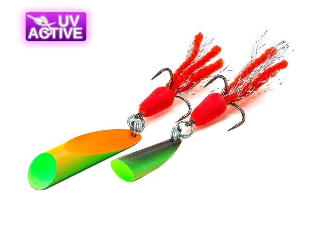 Блешня Грушка-Куля TIGER має яскравий і насичений колір у виграшному поєднанні: червоного з рожевим і зеленого з темно-зеленою спинкою: це класичний і улюблений багатьма Mat Tiger. Блешня має стійке покриття фарбою UV-Activ і здатна витримати боротьбу не з одним десятком щук та судаків. До того ж чудово світиться в ультрафіолеті, створюючи додаткове роздратування та підвищену помітність для хижака!