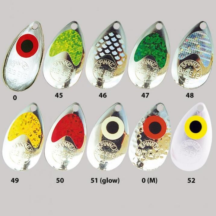 - Ці блешні доступні в розмірах 0-3 і призначені головним чином для лову окуня, язя, кленя та форелі.
