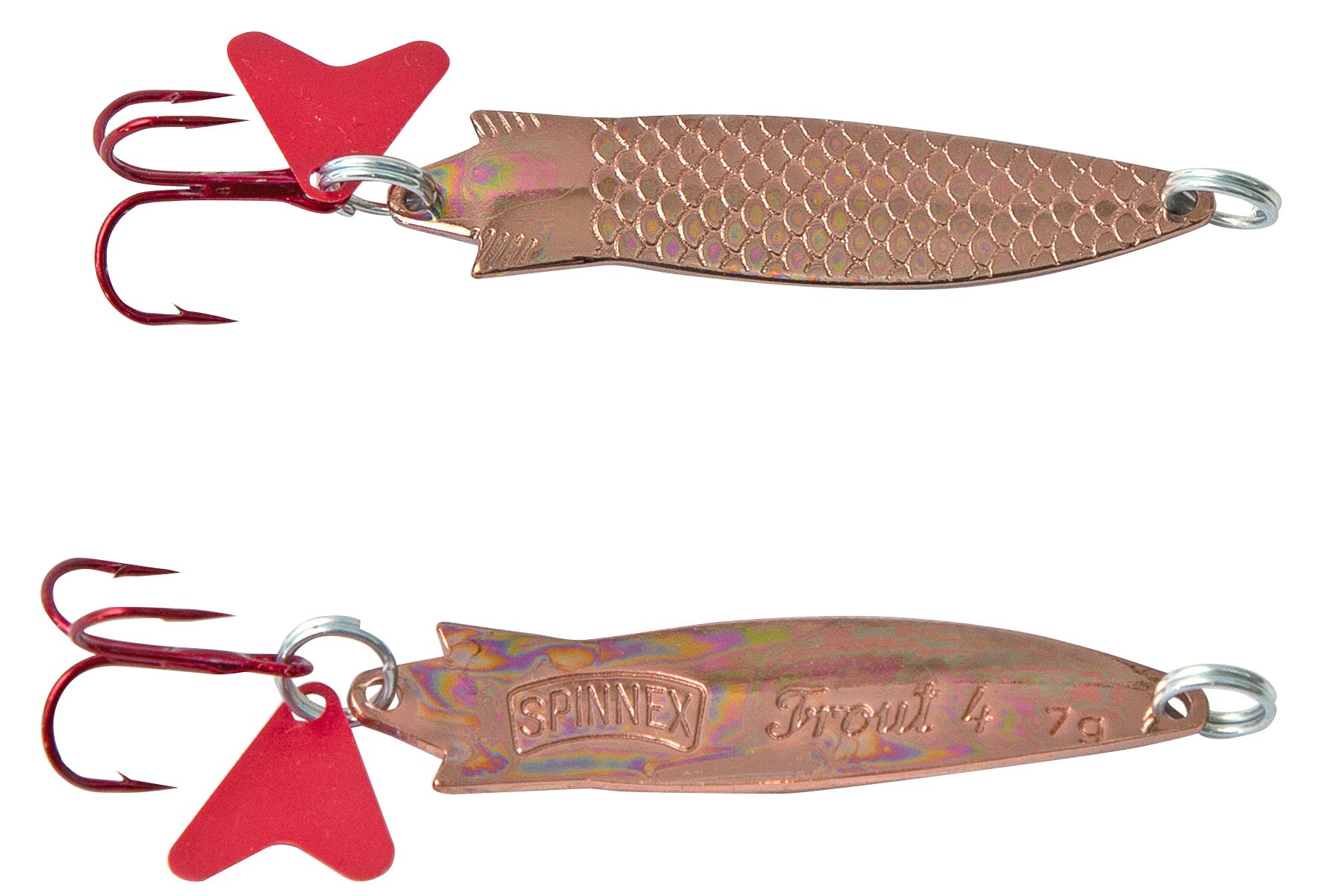 Spinnex Trout серія з трьох блешень видовженої форми та універсального призначення. Найменша модель може бути використана для лову окуня та форелі, великі моделі можна. використовувати при лові щуки, судака, жереха, а також при лові тайменю з берега моря.