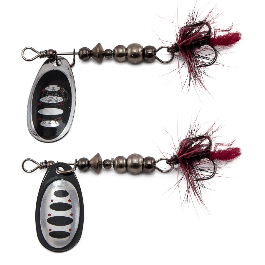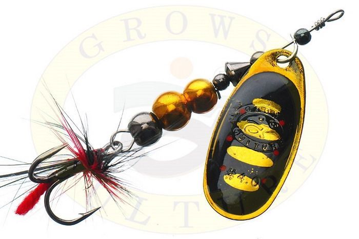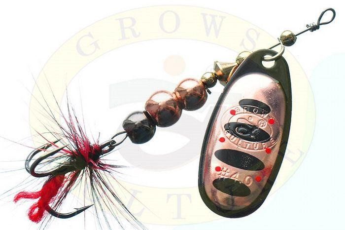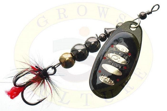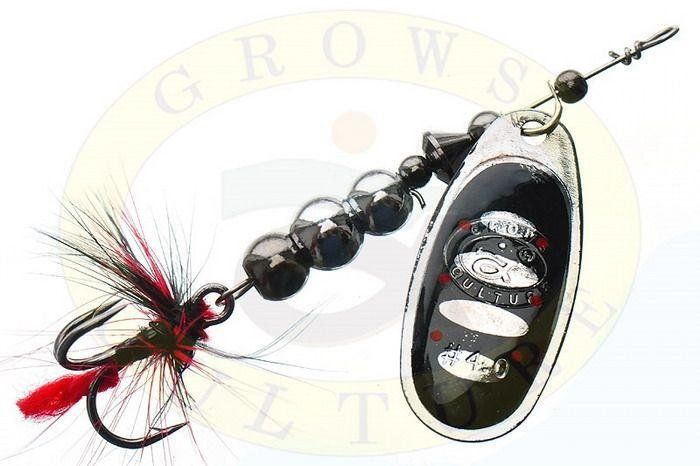 Блешня Grows Culture Ball Bearing Spinner оснащена гострим трійником до якого прикріплені маскуючі гачки пір'їнки, що також надає приманці додаткову привабливість.