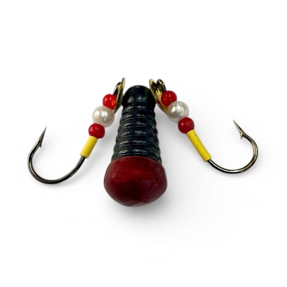 Блешня Яйця від ПрофМонтаж в асортименті 3 кольори: Червоний, Чорно/Червоний, Зелено/Червоний. У блешні використовуються 2 гачки "Cobra".