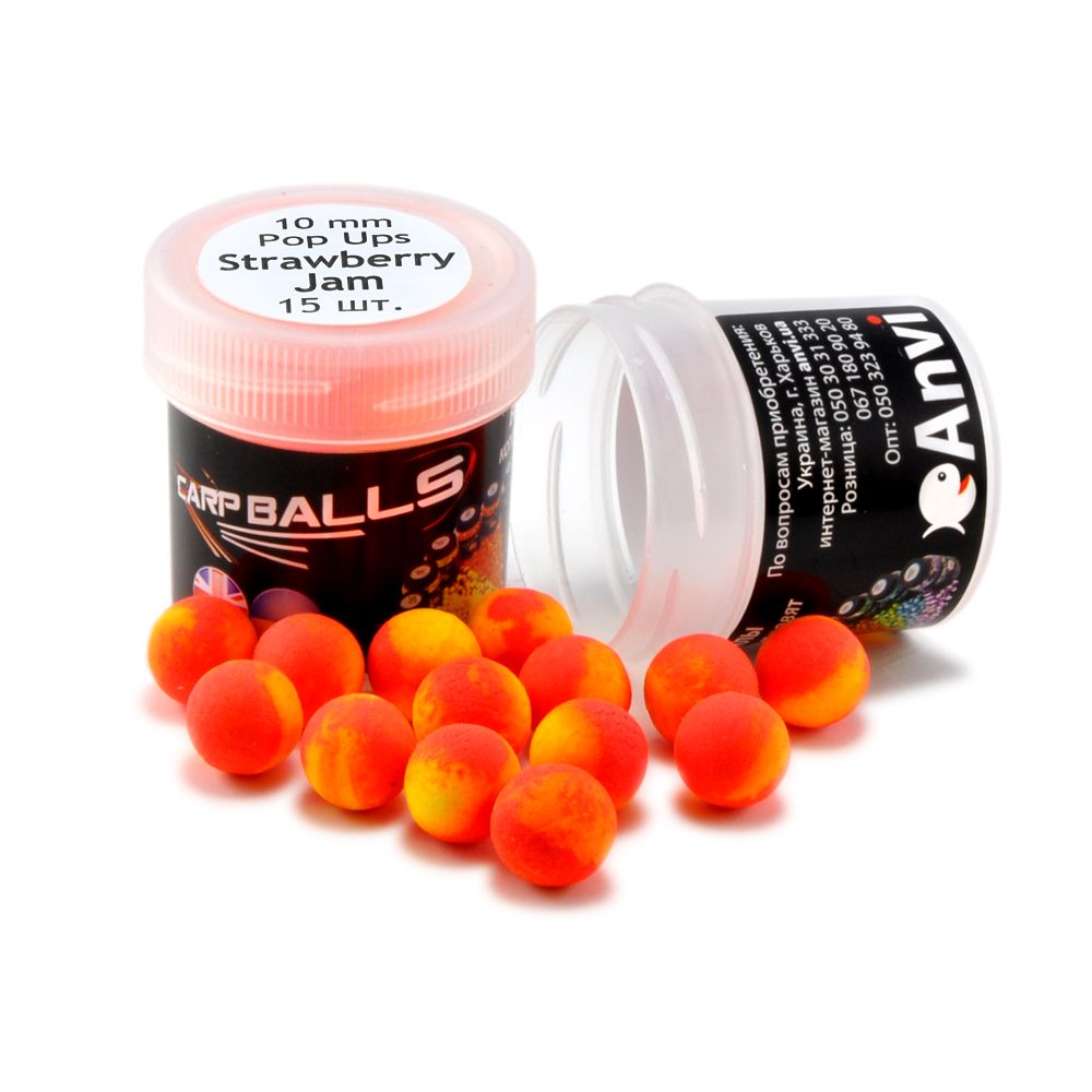 Бойли Carp Balls Pop Ups - Плаваючі - Ø10 мм - 15 шт/уп - Strawberry Jam (Полуничний джем)