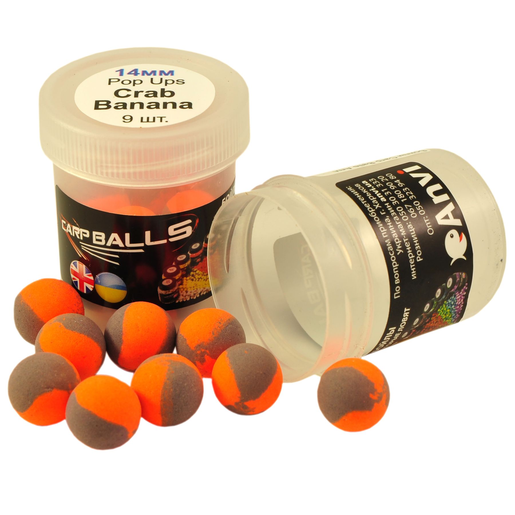 Бойли CarpBalls Anvi Pop Ups - Пробник - 9 шт. - Плаваючі - Ø14 мм - Crab&Banana