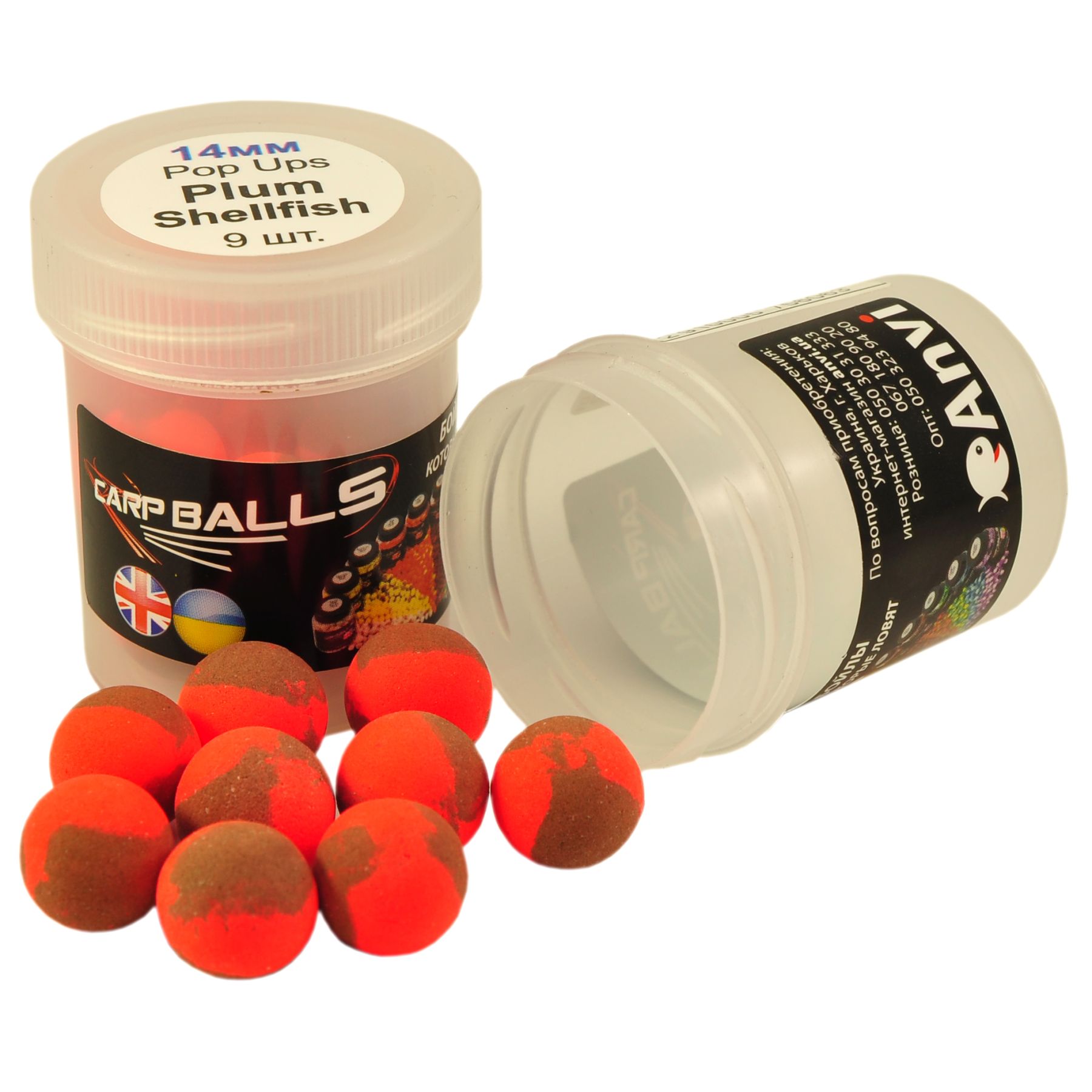 Бойли CarpBalls Anvi Pop Ups - Пробник - 9 шт - Плаваючі - Ø14 мм - Plum and Shellfish