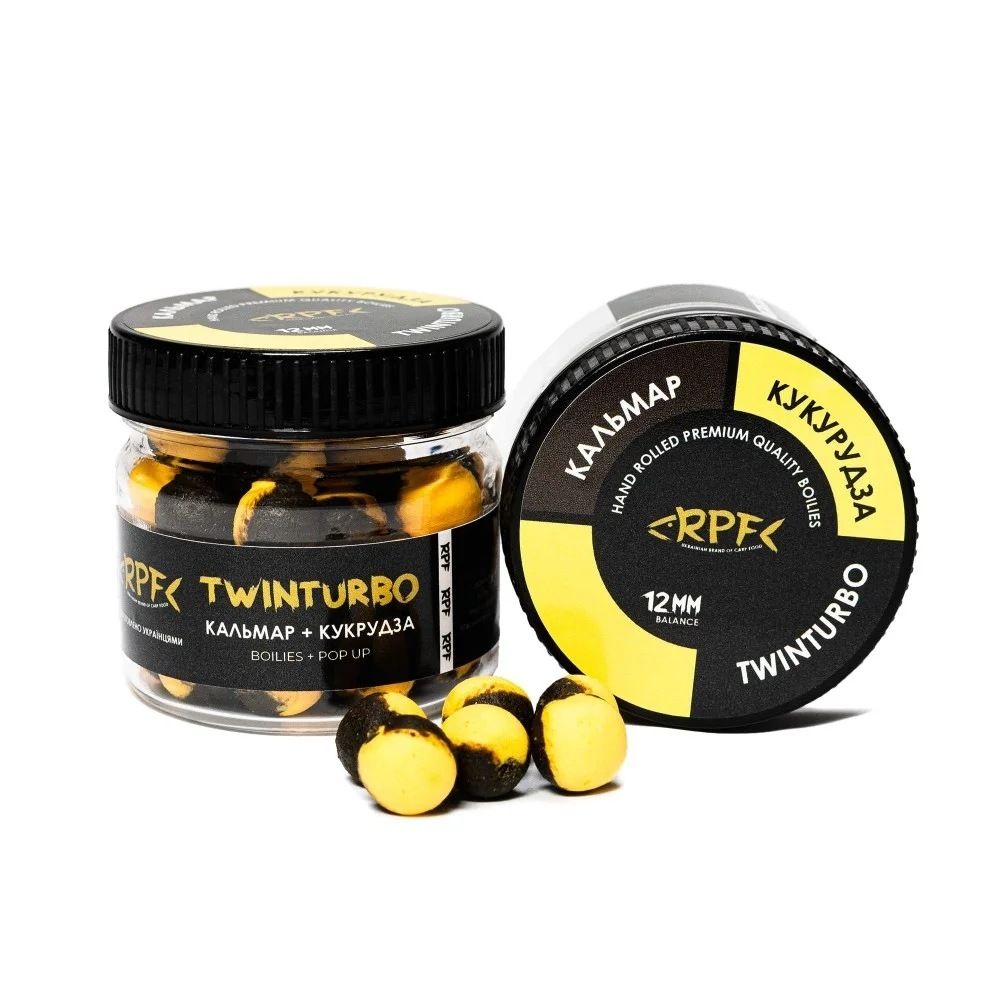 Бойли RPF Баланс TwinTurbo (Бойл+Поп-ап) Ø10 мм - Кальмар+Кукурудза - Двокольорові - Нейтральна плавучість - 30 г