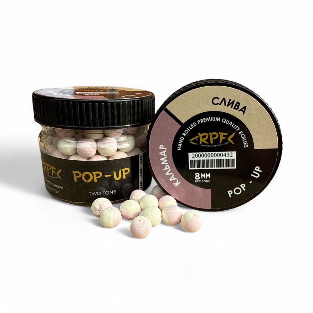 Бойли RPF Поп-ап "Two Tone" це насадка круглої форми, яка має два кольори та насичений смак. Бойли випускаються в різних діаметрах: 6 мм, 8 мм, 10 мм, 12 мм і мають відмінну плавучість. Постачаються у герметичних ПЕТ-банках.