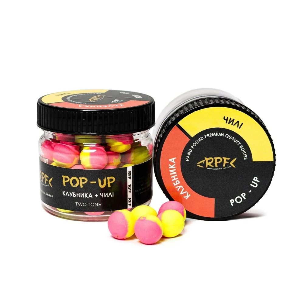 Бойли RPF Поп-ап "Two Tone" це насадка круглої форми, яка має два кольори та насичений смак. Бойли випускаються в різних діаметрах: 6 мм, 8 мм, 10 мм, 12 мм і мають відмінну плавучість. Постачаються у герметичних ПЕТ-банках.