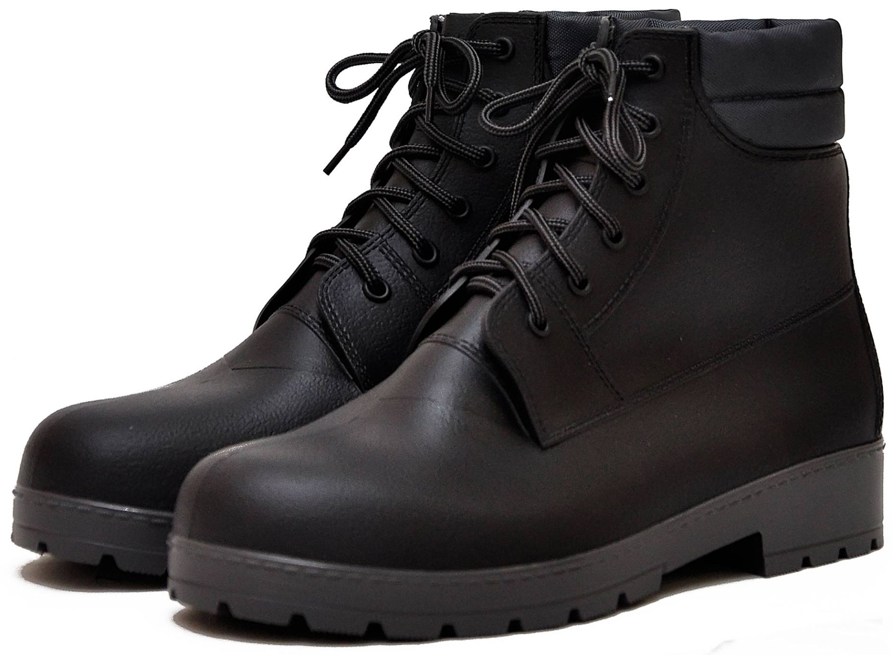 Зовнішня частина виконана з високоякісної гуми, яка завдяки спеціальній обробці зовні практично не відрізняється за виглядом від натуральної шкіри. Для того, щоб забезпечити ногам максимальний рівень комфорту в районі щиколотки передбачено наявність м'якої вставки. Мають товсту підошву з глибоким протектором, який забезпечить ідеальне зчеплення з будь-якою поверхнею і захистить від проколів і порізів.