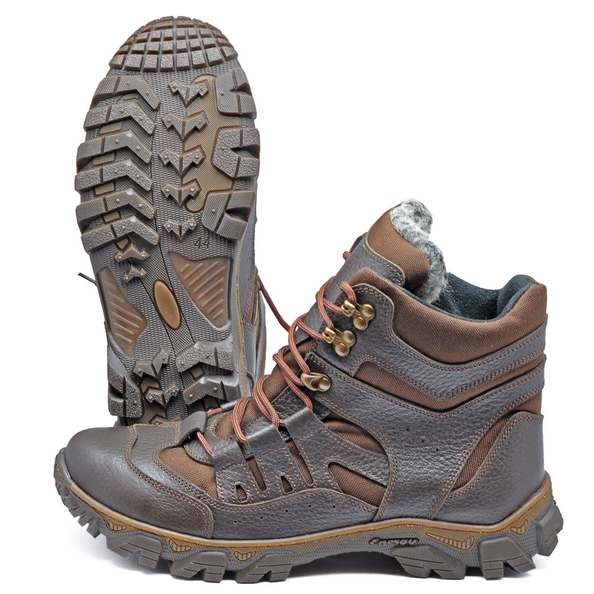 Утеплювач - набивна шерсть. Черевики мають якісну підошву з глибоким протектором, матеріал якої розрахований на експлуатацію при низьких температурах.