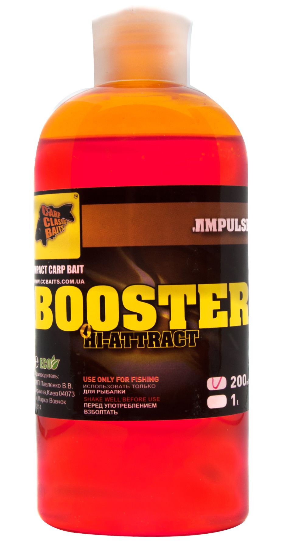З його допомогою можна ароматизувати пелетси, бойли та зернові, а також замішувати дрібнофракційні підживлювальні суміші. Рекомендоване дозування – 50 мл бустера на кілограм підгодовування.