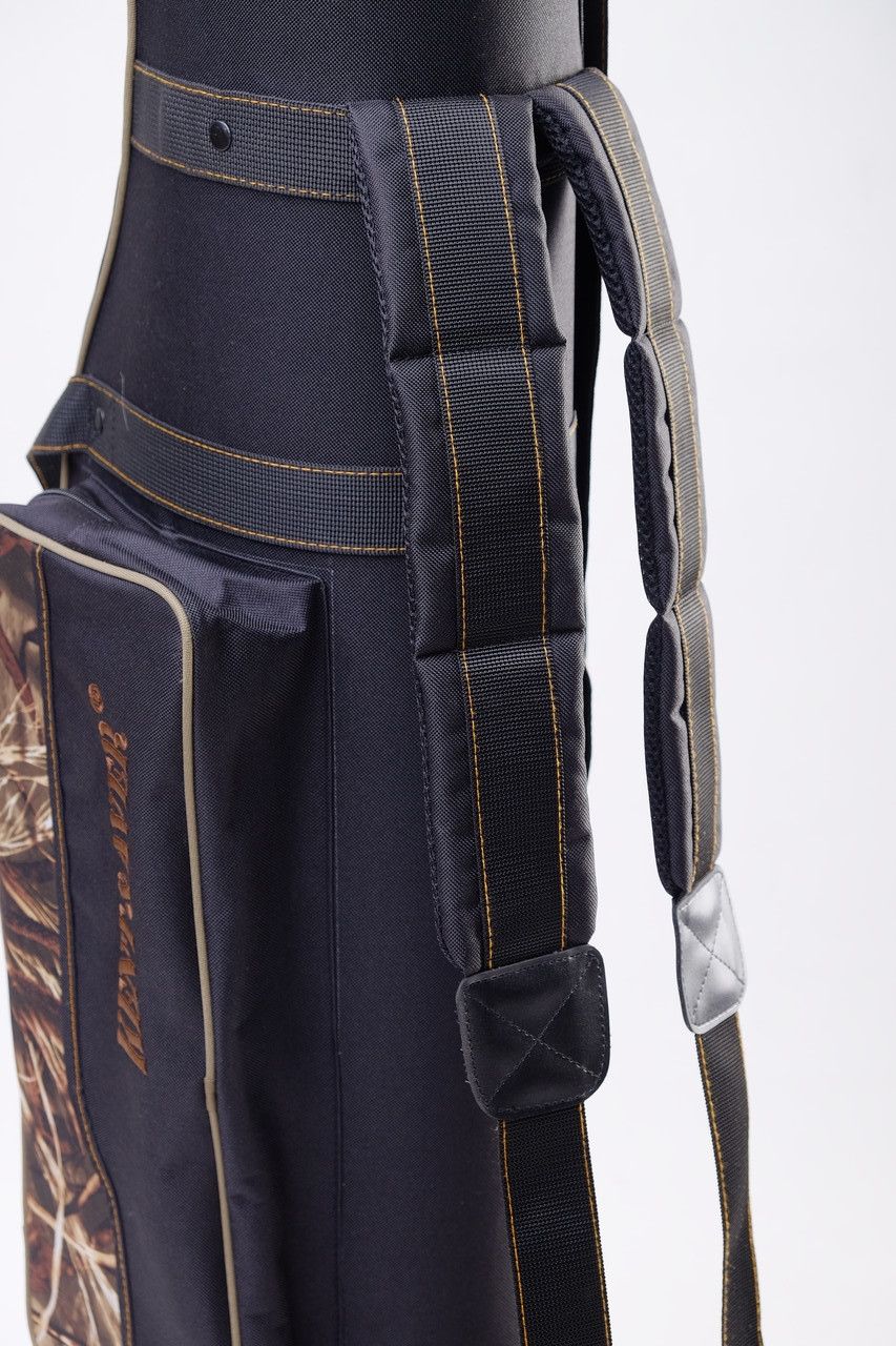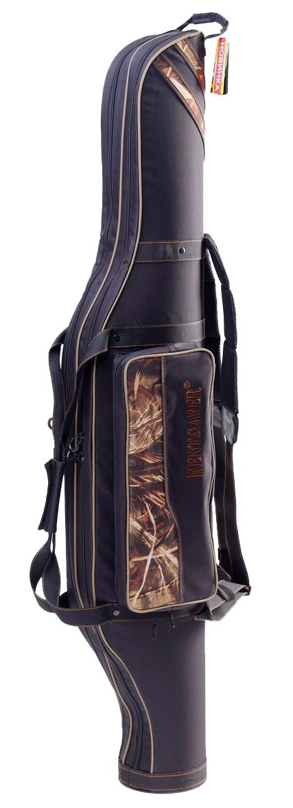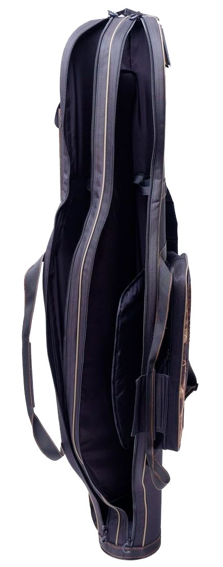 - Особливості: 2 наплічних ременя, водонепроникний, двозамкова застібка-блискавка, кишеня для зберігання стійок, відкривається з двох сторін, перевезення вудлищ без зняття з них котушок, ручка-лямка у верхній частині