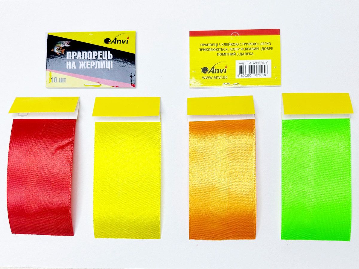 Прапорець для жерлиці Anvi представлений у жовтому, зеленому, червоному та помаранчевому кольорі. Завдяки такому різноманіттю кольорів Ви зможете підібрати найбільш підходящий Вам колір, щоб позначити свій сектор лову.