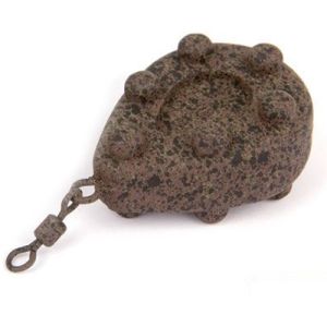 Грузило Плоска Груша з шипами не просто пофарбовано, воно покрите матовим прогумованим покриттям, що не відображає світло, коричневого кольору з вкрапленнями гравійного, що дозволяє грузилу відмінно зливатися з кольором дна.