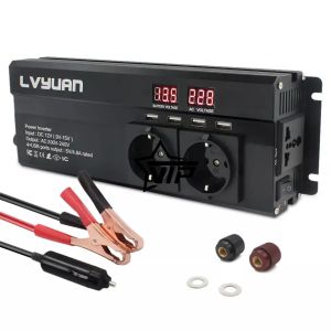 Інвертор 12V-220 "LVYUAN 1600W", перетворювач напруги 12V-220V - Модифікована синусоїда частотою 50Гц, видає максимальну потужність 2000 Ватт. Номінальна робоча довготривала потужність 1000 Ватт. Інвертор має 4 USB розетки, для зарядки телефонів, планшетів і т.д., і оснащений LCD дисплеєм для індикації вхідної та вихідної напруги! Для охолодження передбачений 1 кулер, у наборі 2 комплекти мідних проводів для підключення до АКБ (Крокодили) та для підключення до прикурювача (штекер прикурювача).