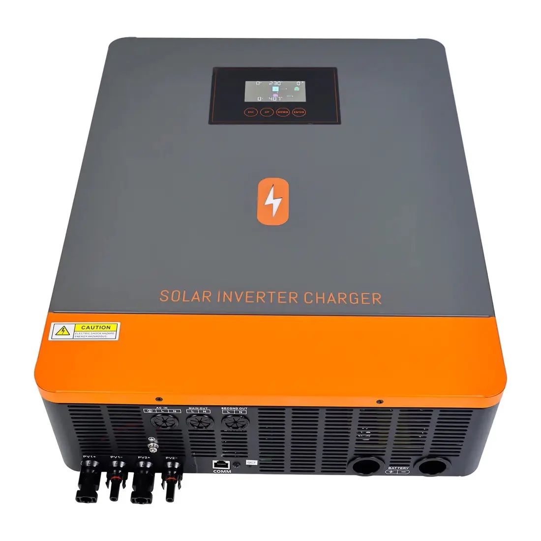 Інвертор пропонує виняткову гнучкість, поєднуючи вбудований MPPT сонячний контролер заряду з подвійними фотоелектричними входами та двома виходами змінного струму. Завдяки можливості розподілити первинний та вторинний вихід він забезпечує максимальний струм 160 А (PV+AC). Сумісний з літієвими, свинцево-кислотними та користувальницькими батареями 48 В, він забезпечує різні варіанти зберігання енергії. Залишайтеся на зв'язку та контролюйте за допомогою зручних комунікаційних портів RS-232/WIFI/Remote LCD для легкого моніторингу та керування.