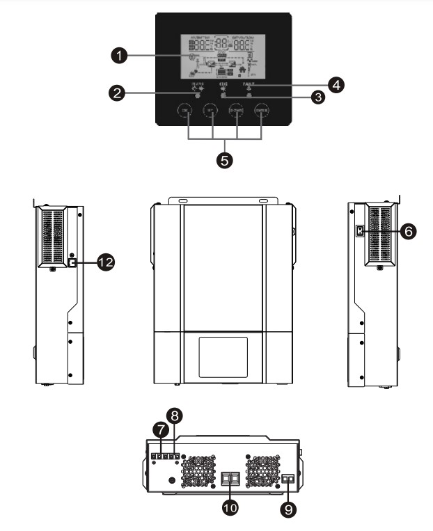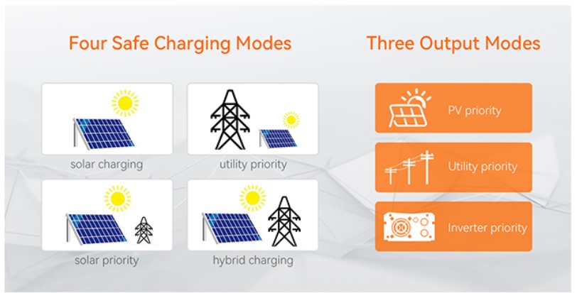 Гібридний інвертор PowMr POW-HVM2.4H-24V – це багатофункціональний інвертор/зарядний пристрій, що поєднує функції інвертора, сонячного зарядного пристрою з MPPT і зарядного пристрою для акумулятора, щоб забезпечити підтримку безперебійного живлення. Він має РК-дисплей, який може бути налаштований користувачем і легкодоступні кнопки для перемикання функцій (такі, як зарядний струм акумулятора, пріоритет змінного/сонячного зарядного пристрою та прийнятна вхідна напруга на основі різних програм).