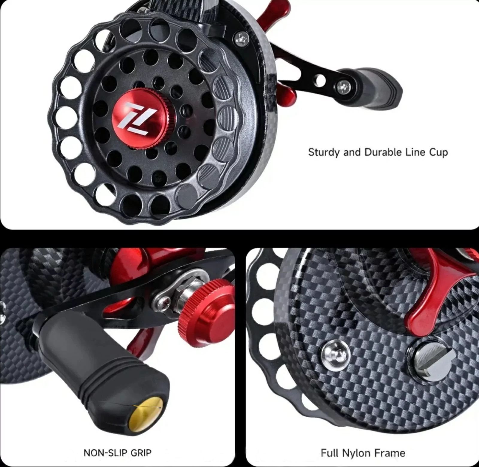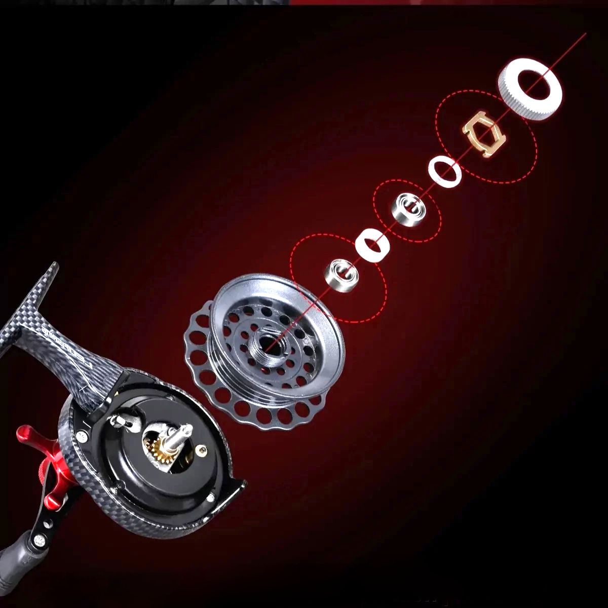 Відмінною особливістю котушки є подовжена ніжка і її конструкція з передавальним числом 3.5:1 плюс якісне регульоване фрикційне гальмо, що дозволяє виймати рибу з лунки безпосередньо обертанням рукоятки самої котушки. Тягти рибу за волосінь нема потреби.