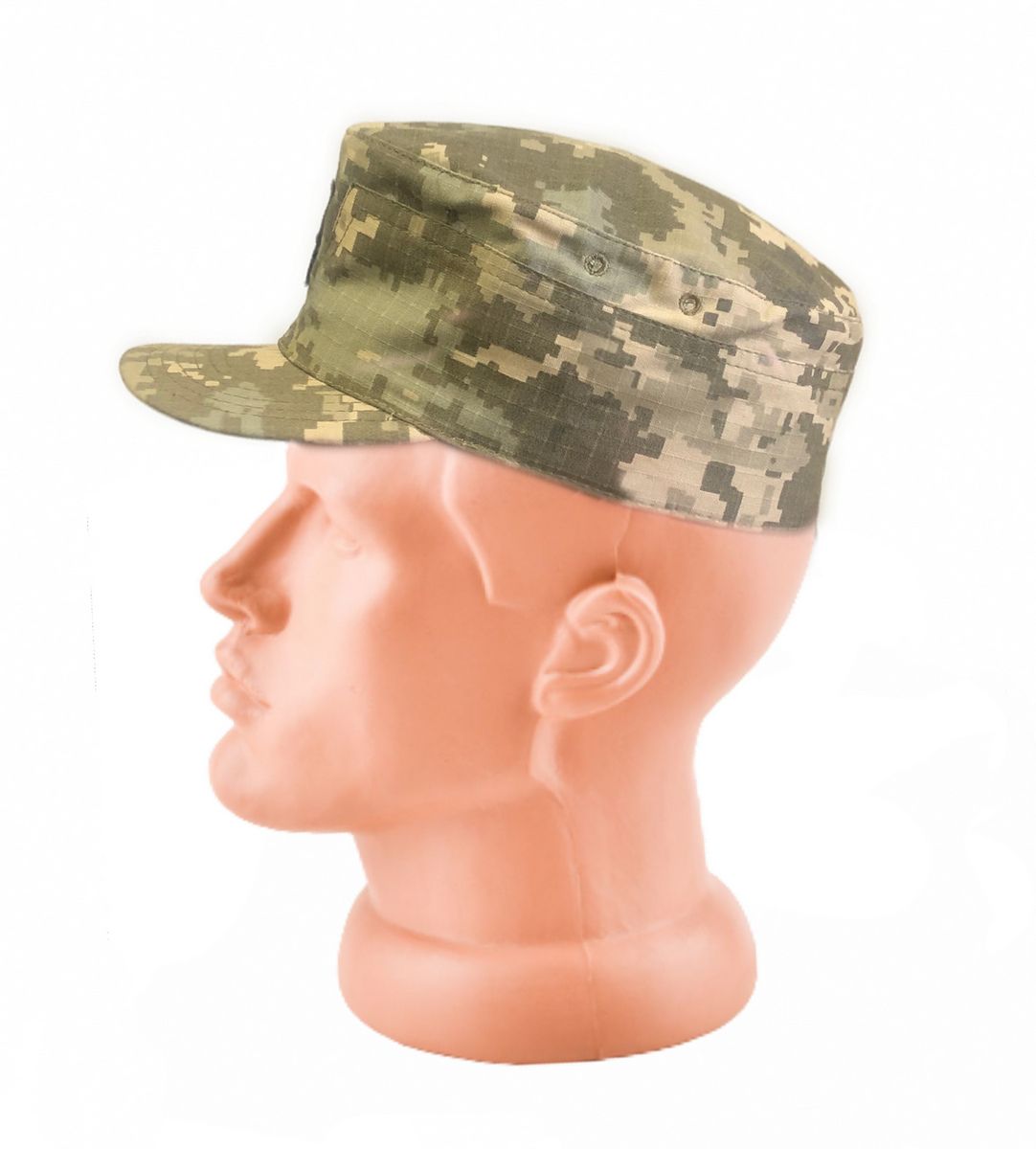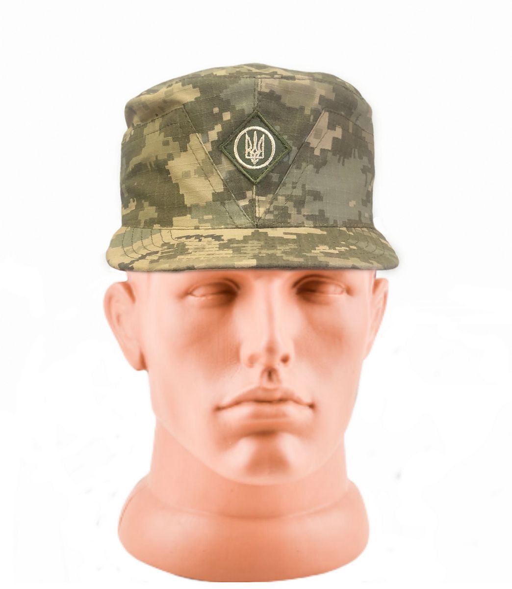 Тактична формена кепка пошита з якісної тканини кольору піксель. Над козирком пришита кокарда із тризубом (шеврон із гербом України).