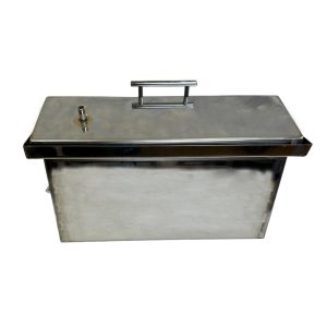 Дана модель коптильні виготовлена з якісної нержавіючої сталі завтовшки 1,5 мм. Кришка коптильні має форму «будиночка» не тільки для привабливого зовнішнього вигляду, але і для того, щоб конденсат, який утворюється всередині коптильні в процесі копчення не капав на продукти, а стікав по стінках кришки у гідрозатвор.