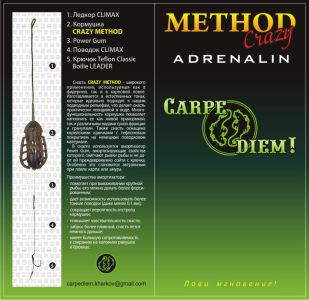 Снасть Method Crazy Adrenaline - широкого застосування, що використовується як у фідерному, так і в короповому лові.