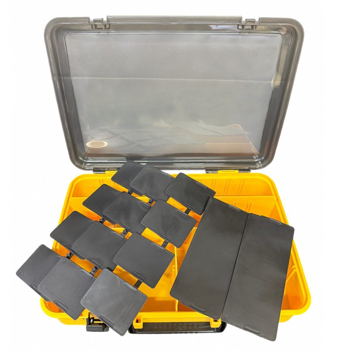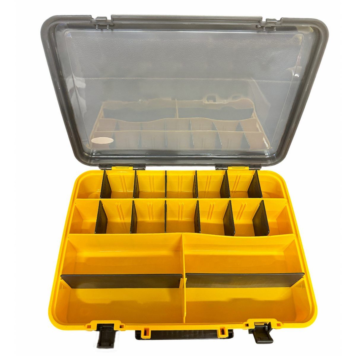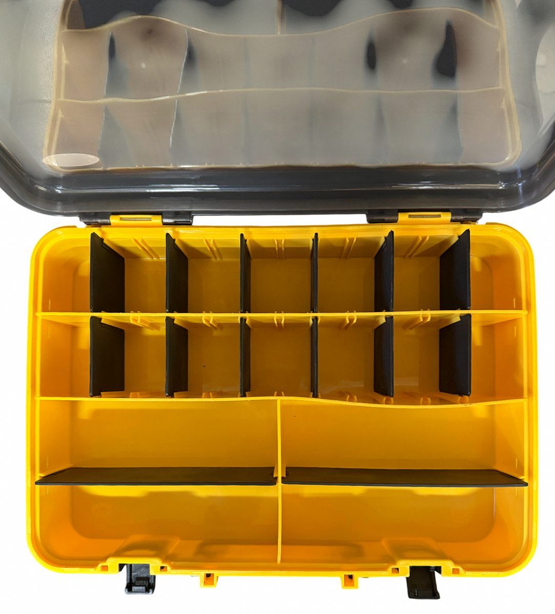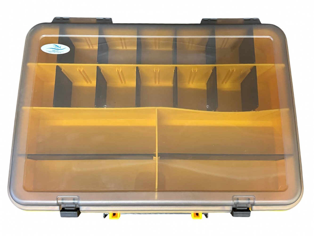 Коробка Briz 057 має 4 основні великі відділення, які можна трансформувати за допомогою 14 додаткових перегородок-вставок. При використанні перегородок кількість осередків може бути 18.