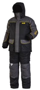 Костюм виконаний в темно-сірому кольорі зі світлішими вставками. У найбільш вразливих місцях він додатково посилений спеціальними вставками та шарами міцної тканини для того, щоб значно продовжити термін експлуатації. Обидва елементи одягу додатково утеплені запатентованим наповнювачем Thermo Guard - легким, дихаючим і якісним, який прекрасно зберігає необхідний теплообмін і оптимальну температуру тіла.