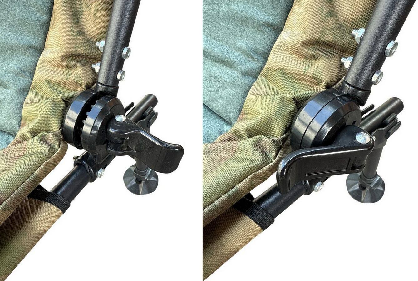 Багаторівнева система розкладання дозволяє легко змінювати положення спинки за допомогою зубчастих фіксаторів - розкладається в положення "лежачи" за допомогою надійних фіксаторів-затискачів на зубчастих шарнірах, що дозволяє відкинути спинку та зафіксувати її у потрібному комфортному положенні. Завдяки такому регулюванню крісло можна перетворити на стілець для кемпінгу, або відкинувши спинку, використовувати як шезлонг для відпочинку та засмаги.