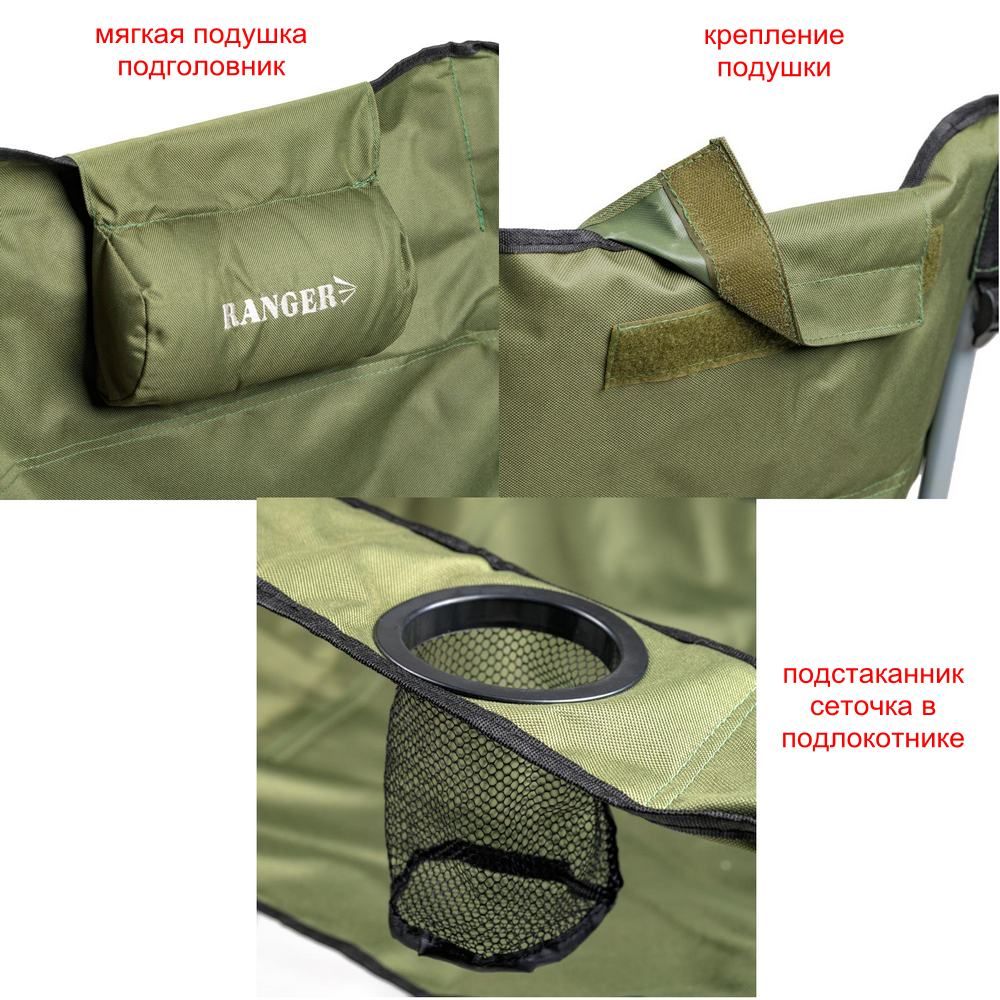 Розкладне крісло шезлонг Ranger Stream добре підходить для риболовлі, полювання, відпочинку в лісі, на дачі або на березі водойми.