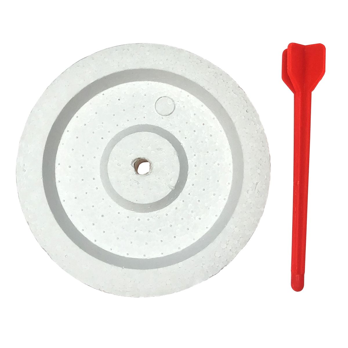 Кружки рибальські виготовлені з пінопласту мають діаметр 15 см і товщину 2 см. У центрі кружка отвір для встановлення пластмасової палички на вершині якої забарвлено яскравим кольором. Це потрібно для сигналізації клювання і привернення уваги рибалки.