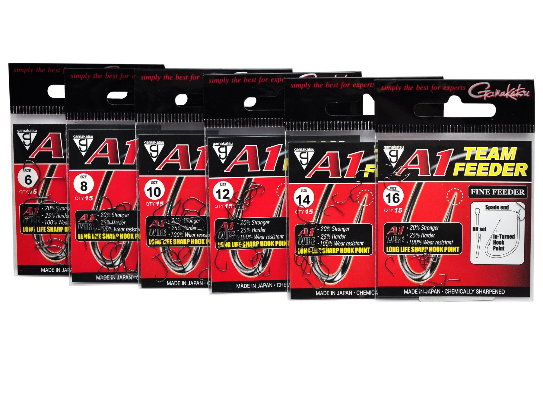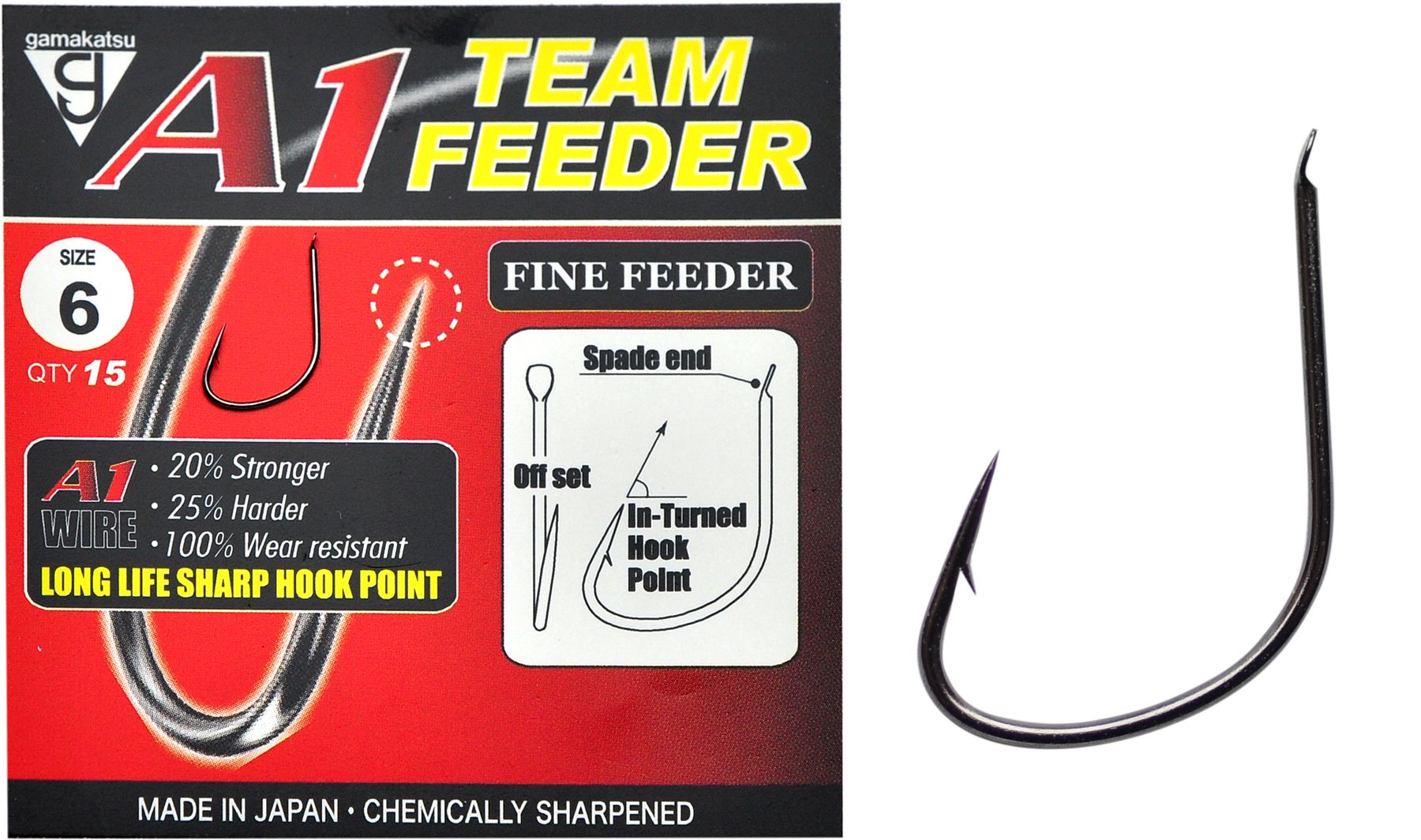 Гачок Gamakatsu A1 Team Feeder Fine Feeder виготовлений з унікального спеціально розробленого матеріалу з вмістом вольфраму та ванадію. Завдяки такій комбінації Gamakatsu A1 на 20% міцніше та на 25% жорсткіше. Крім того, завдяки такому складу збільшується зносостійкість, гачки залишаються гострими навіть при багаторазовому використанні.