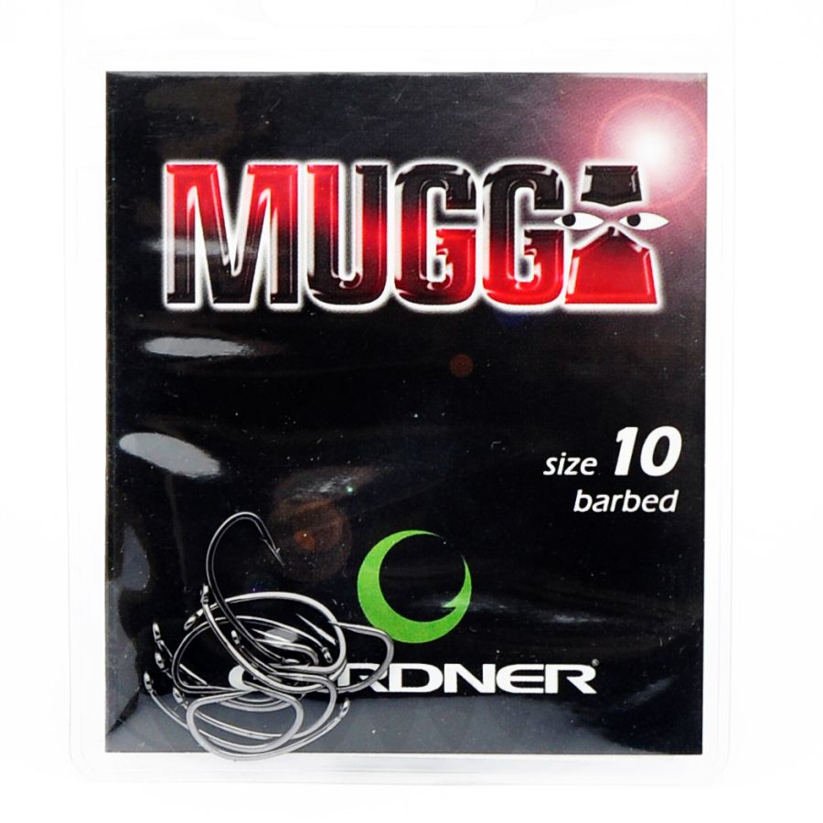 Довгі вигнуті гачки Gardner Mugga Hooks, призначені спеціально для використання в оснастках, які перешкоджають рибі виплюнути цю оснастку і зрештою короп міцно трапляється на гачок. Вони мають розширений вигнутий хвостовик, який беззвучно і агресивно в момент коли короп клює, проникає в нижню губу риби, закріплюючись там. Ці гачки можуть використовуватися для насадок різних форм, у тому числі зі спливаючими насадками поп-ап. Вони ідеально підходять для використання з ефективним оснащенням 360° rig. Доступні у різних розмірах 2, 4, 6, 8, 10, 12. По 10 гачків в упаковці. Коропфішери рекомендують використовувати розмір 8 у поєднанні з принадами діаметром 14-16 мм.