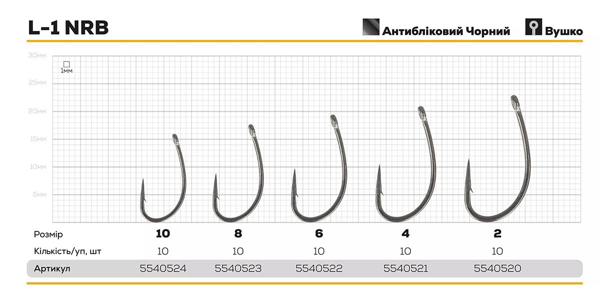Гачок Hayabusa Carp L-1 NRB - Тефлонове покриття - Матовий чорний - 10 шт/уп