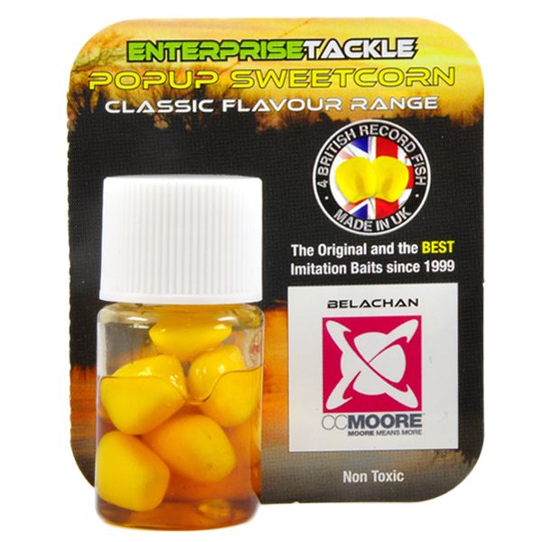 У банці 8 зерен жовтого кольору. Enterprise Tackle для просочування штучних насадок використовує атрактанти власного виробництва та відомих виробників високоефективних природних та синтетичних речовин, що змушують рибу рухатися до джерела запаху.