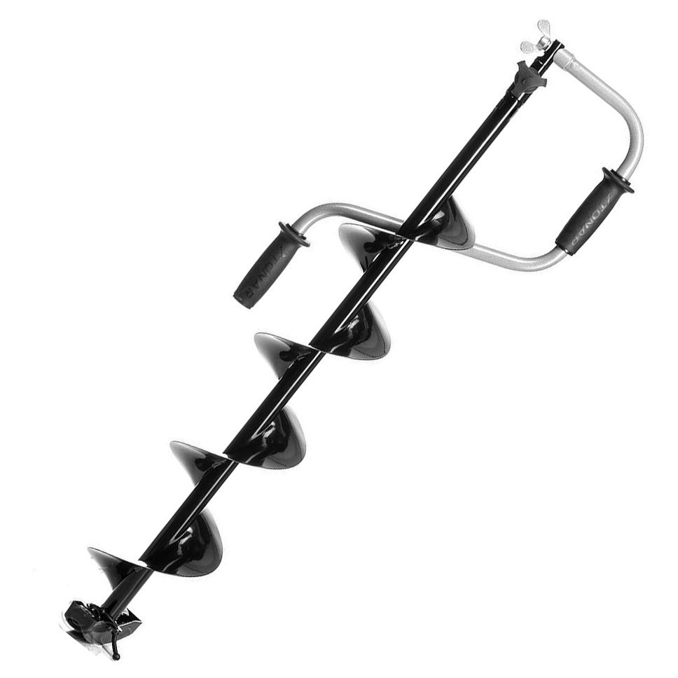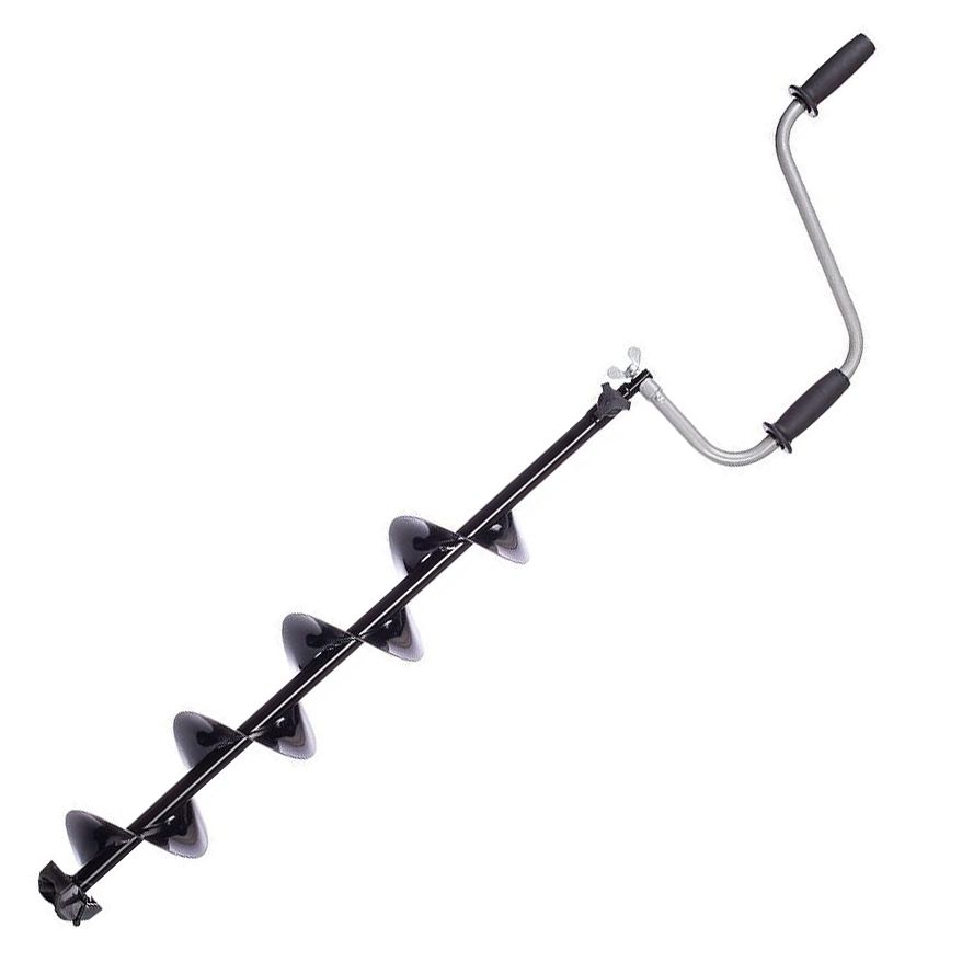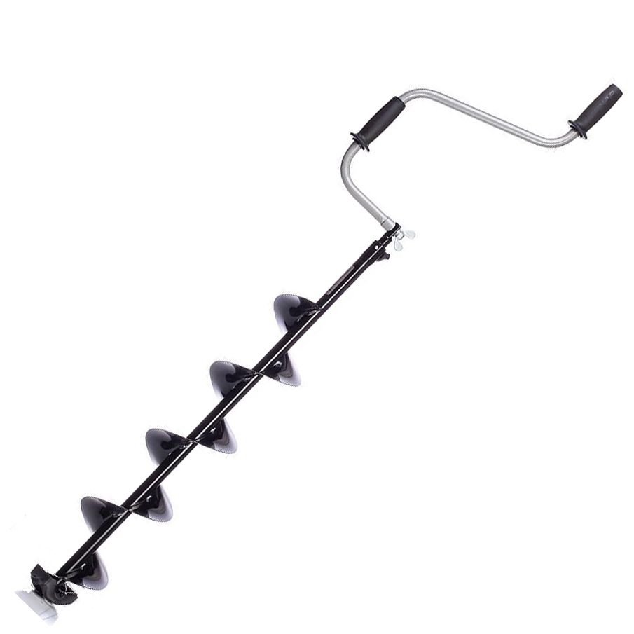 Верхня рукоятка льодобуру зміщена щодо осі льодобуру на 105 мм, а нижня на 165 мм. Таке розташування рукояток дозволяє обертати ледобур одночасно двома руками, тим самим збільшуючи швидкість буріння лунок в льоду.