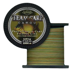 Використовуючи сучасні полімерні матеріали, команді Konger вдалося створити дуже міцну і стійку до стирання волосінь, при цьому, вона відрізняється малою пам'яттю, шовковистою м'якістю, що дозволяє рівномірно укладати на шпулі і робити закиди на наддалекі дистанції. Важливо, що характерною ознакою коропової волосіні Konger Team Carp є підвищена розтяжність, необхідна при силовому виведенні трофеїв. Камуфльоване забарвлення коропової волосіні ідеально маскується на мулистому дні водоймища, не дратуючи навіть найобережніших екземплярів риб.