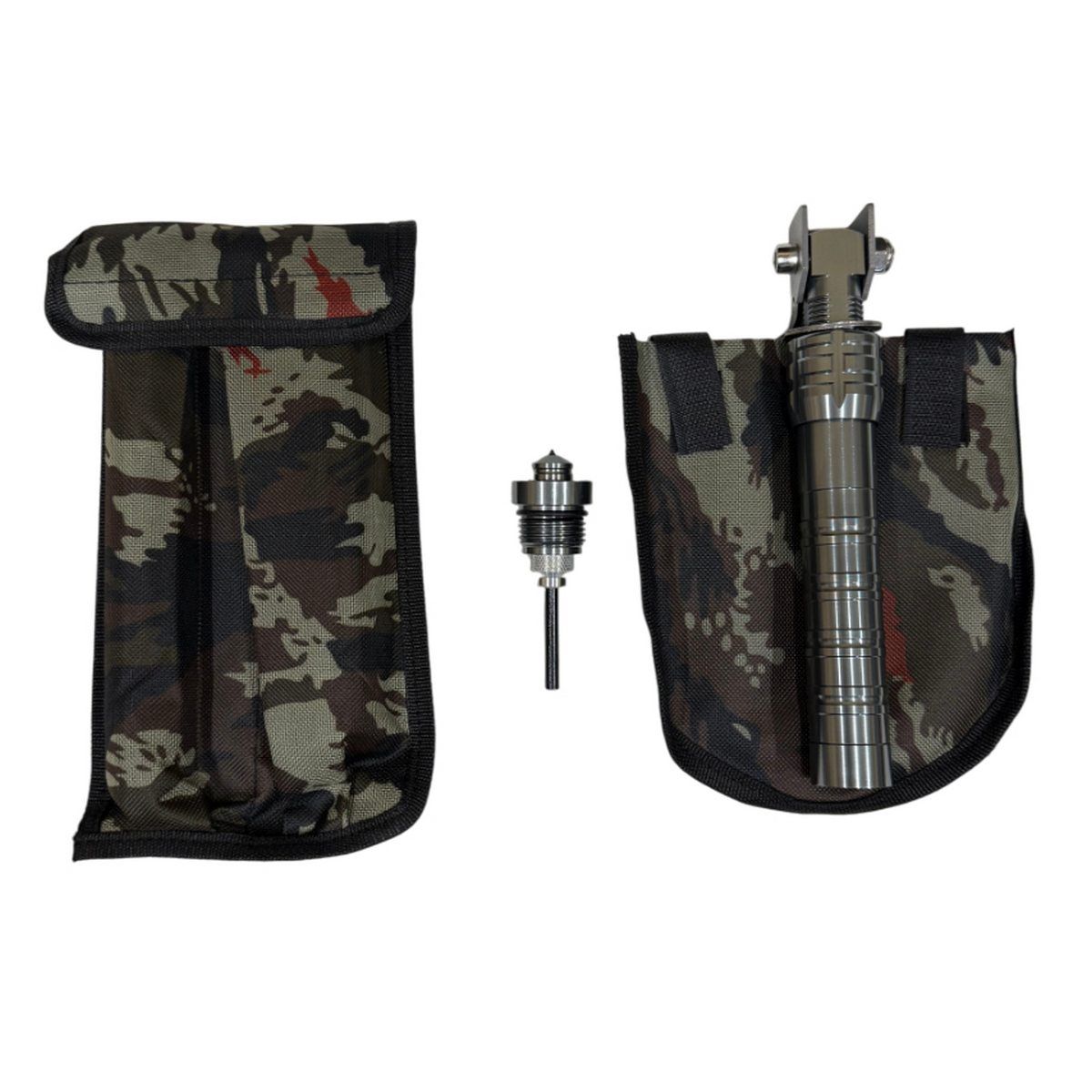 - Набір інструментів: в комплект входить широкий спектр інструментів, включаючи лопату, мотику, викрутку, свисток, склобій, скребок, острог для риби, відкривачку, тактичну биту, ручку для викрутки, кремінь та інші.