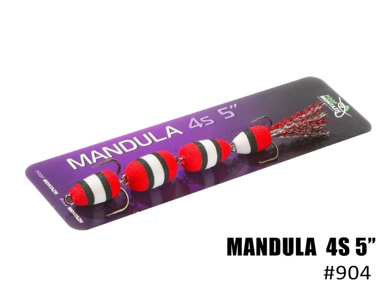 Мандула 4S 5" 125 мм - складається з 4 частин тіла, які забезпечують відмінну грайливість гри приманки, оснащується двома гострими трійниками №2 і №4. Хвіст мандули оснащений кольоровою опушкою з люрексу.