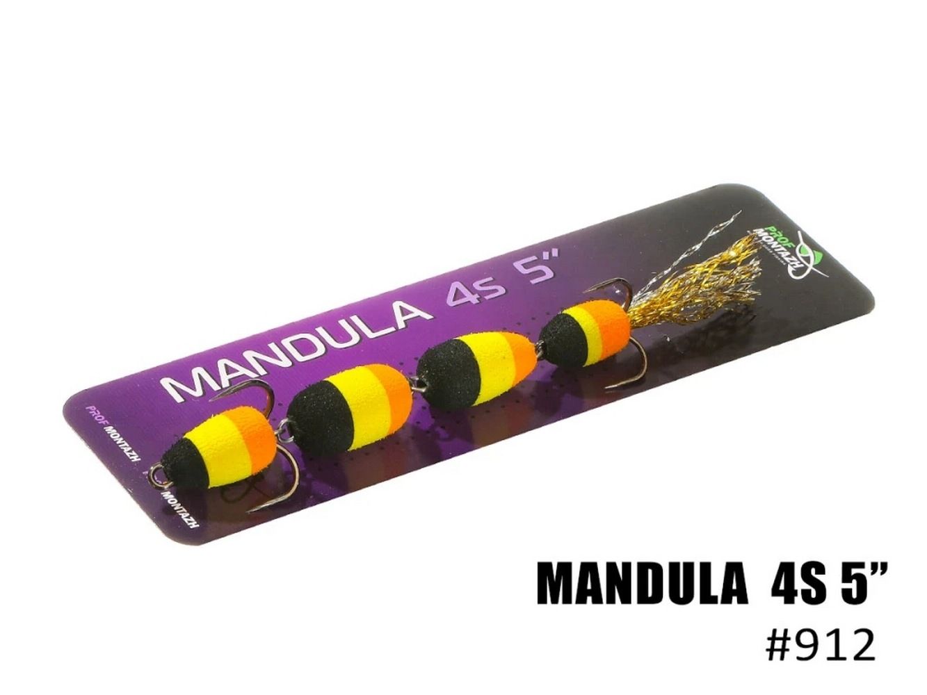 Мандула 4S 5" 125 мм - складається з 4 частин тіла, які забезпечують відмінну грайливість гри приманки, оснащується двома гострими трійниками №2 і №4. Хвіст мандули оснащений кольоровою опушкою з люрексу.