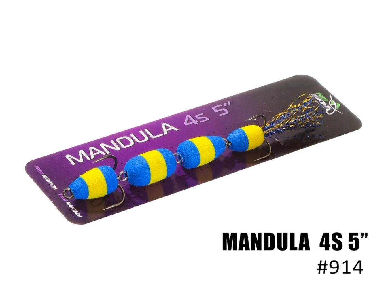 Мандула 4S 5" 125 мм - складається з 4 частин тіла, які забезпечують відмінну грайливість гри приманки, оснащується двома гострими трійниками №2 і №4. Хвіст мандули оснащений кольоровою опушкою з люрексу.