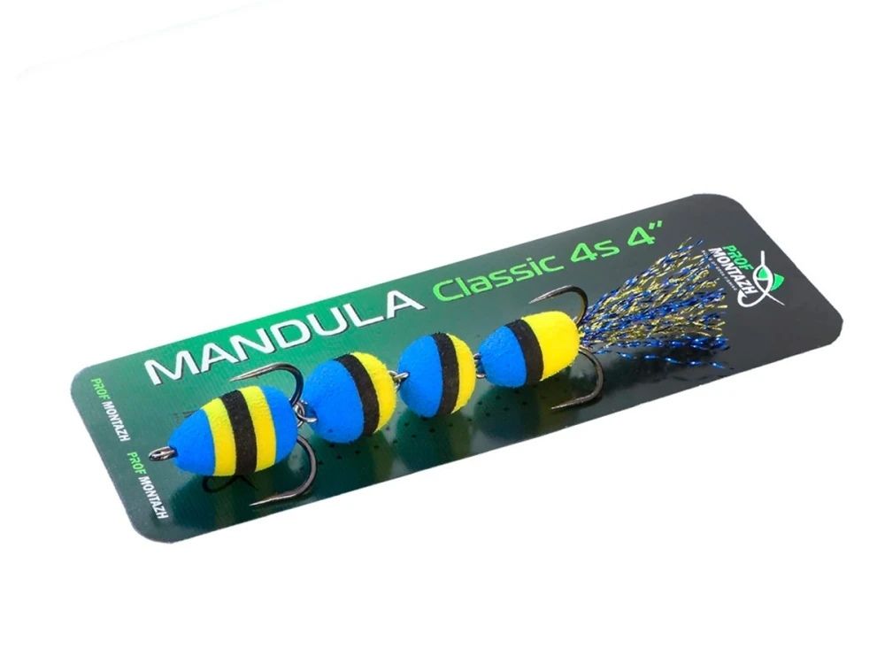 Мандула Classic 4S 4" (100 мм) - складається з 4 сегментів кулястої форми - це надає приманці підвищену рухливість у воді. Оснащується двома гострими трійниками номер 2 і 4. Опушка на хвості з якісного люрексу, який на етапі виготовлення мандули додатково розпушується вручну.