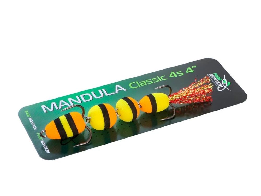 Мандула Classic 4S 4" (100 мм) - складається з 4 сегментів кулястої форми - це надає приманці підвищену рухливість у воді. Оснащується двома гострими трійниками номер 2 і 4. Опушка на хвості з якісного люрексу, який на етапі виготовлення мандули додатково розпушується вручну.