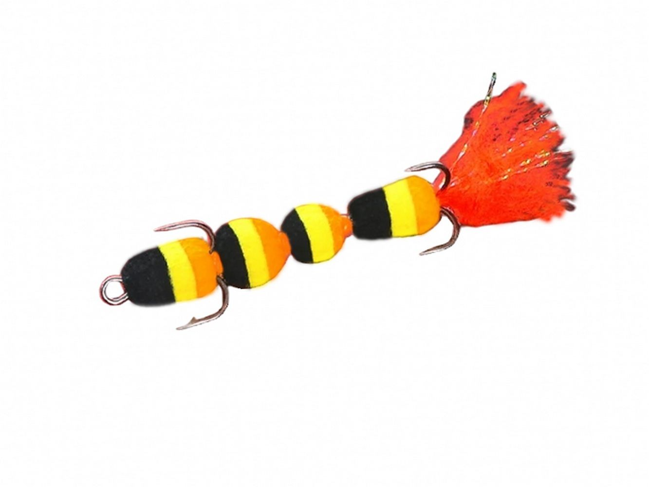 Колірна палітра налічує 14 контрастних, двох та трьох кольорових поєднань. Оснащується двома гострими трійниками номер 10 та 12. Опушка на хвості складена з люрексу та вовняної нитки, світиться в ультрафіолеті, який додатково провокує хижака. Приманка добре працює як у стоячих водоймищах, так і на річці. Дозволяє оснащувати будь-яким типом вантажу.