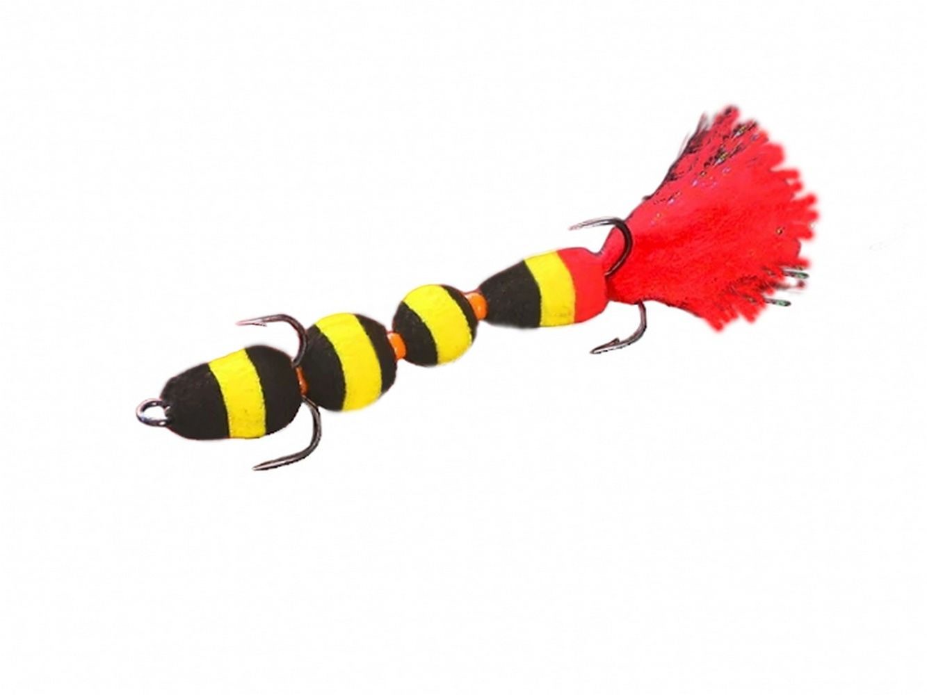 Колірна палітра налічує 14 контрастних, двох та трьох кольорових поєднань. Оснащується двома гострими трійниками номер 10 та 12. Опушка на хвості складена з люрексу та вовняної нитки, світиться в ультрафіолеті, який додатково провокує хижака. Приманка добре працює як у стоячих водоймищах, так і на річці. Дозволяє оснащувати будь-яким типом вантажу.
