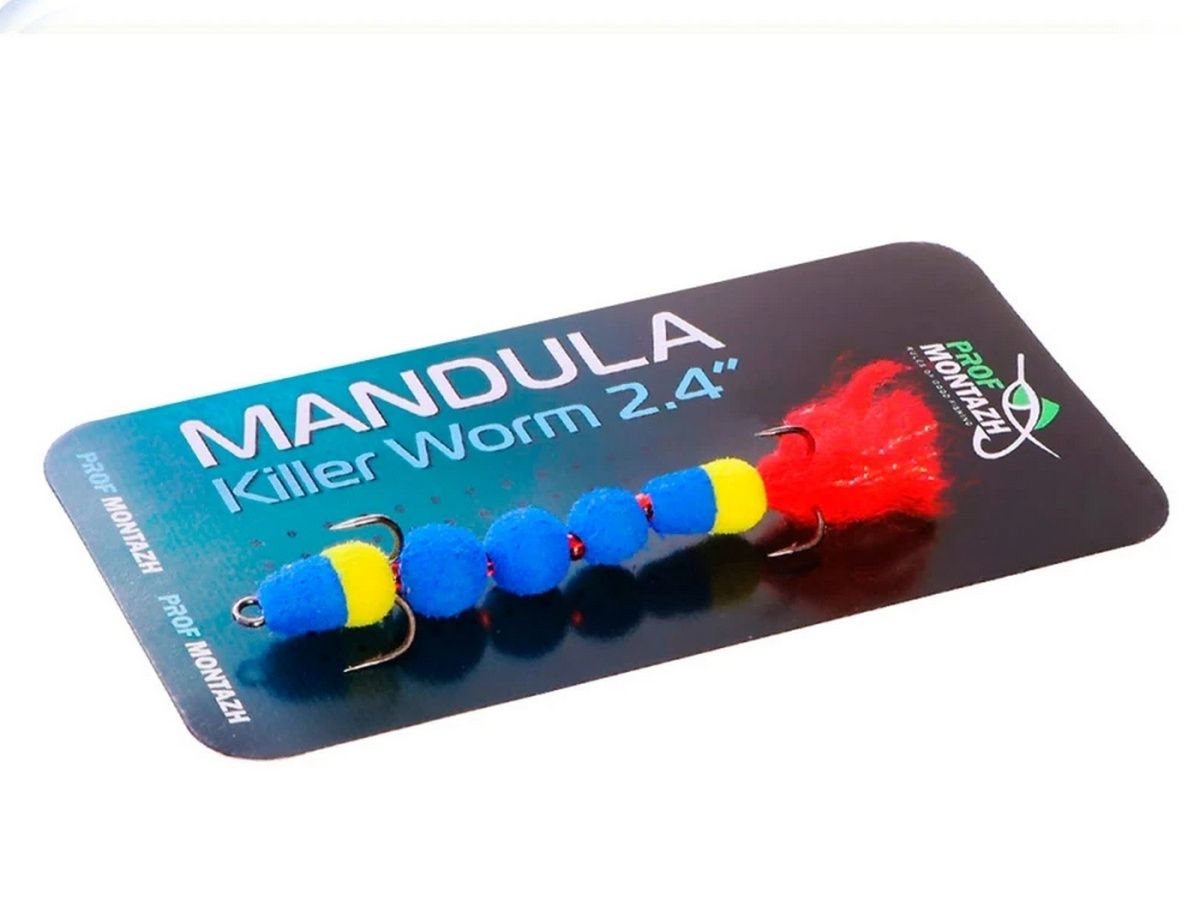 Мандула Killer Worm 5 сегментів 60 мм – найбільша мандула у серії Killer Worm, тіло складено з 5 сегментів, кожна частина відділена бісером, загальна довжина мандули 60 мм. Внаслідок багатосекційності "черв'як-вбивця" показує дуже жваву гру і чітко відгукується на всі дії рибалки. Killer Worm 2.4" відмінно спокушає окуня, судака і щуку і є незамінною приманкою в лайтовій лові вибагливої риби. Добре працює спокійна ступінчаста анімація без різкого скидання, для дуже пасивної риби варто застосовувати волочіння з паузами.