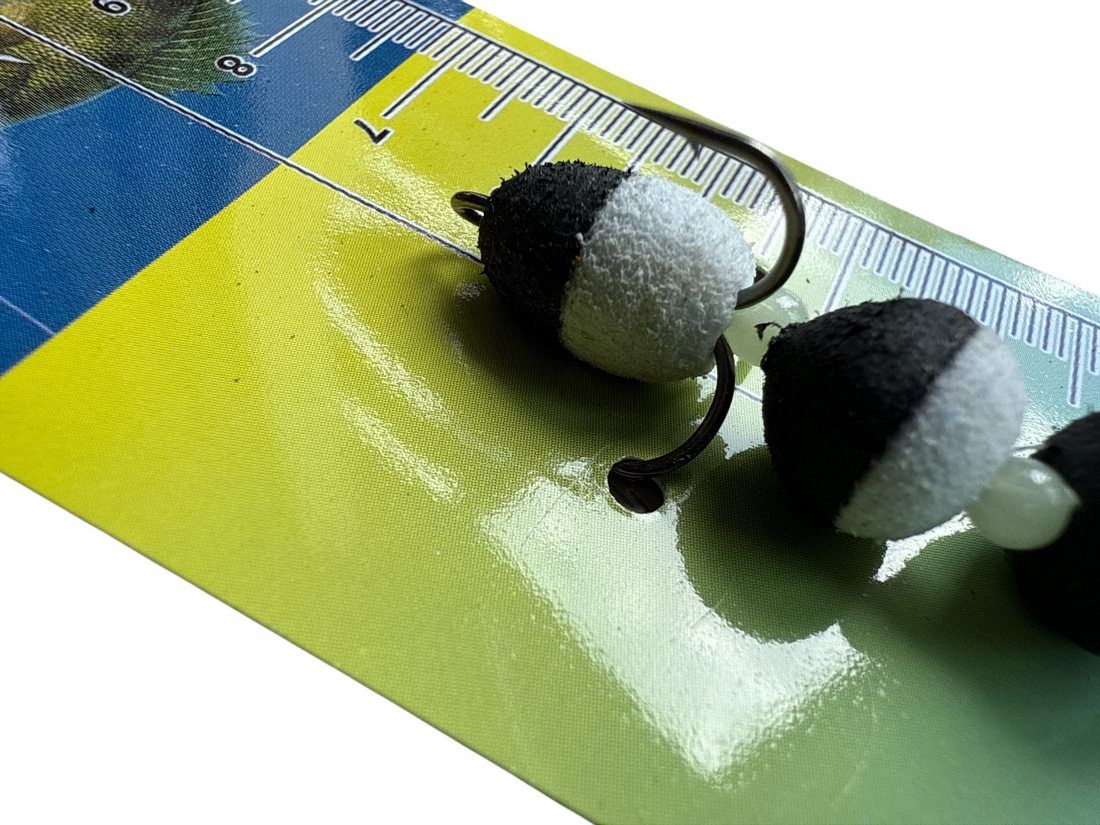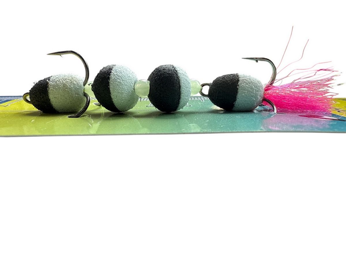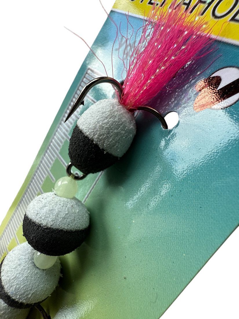 Оснащена двома трійниками Globe №5, які забезпечують надійне засікання риби та мінімізують шанси її зриву та 3 намистинами.
