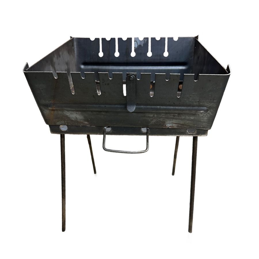 - Мангал виготовлений із високоякісної сталі 2 мм, що забезпечує довговічність та надійність.